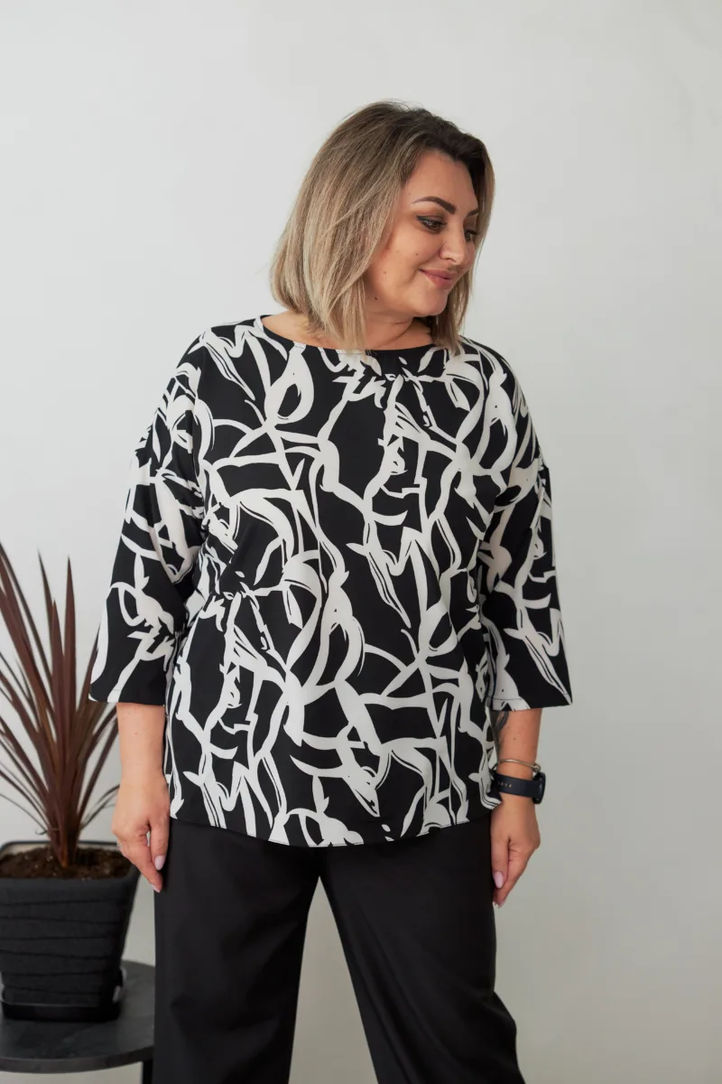 Стильний вигляд: абстрактний принт додає образу оригінальності, а універсальний крій дозволяє легко поєднувати блузу з різними елементами гардеробу.