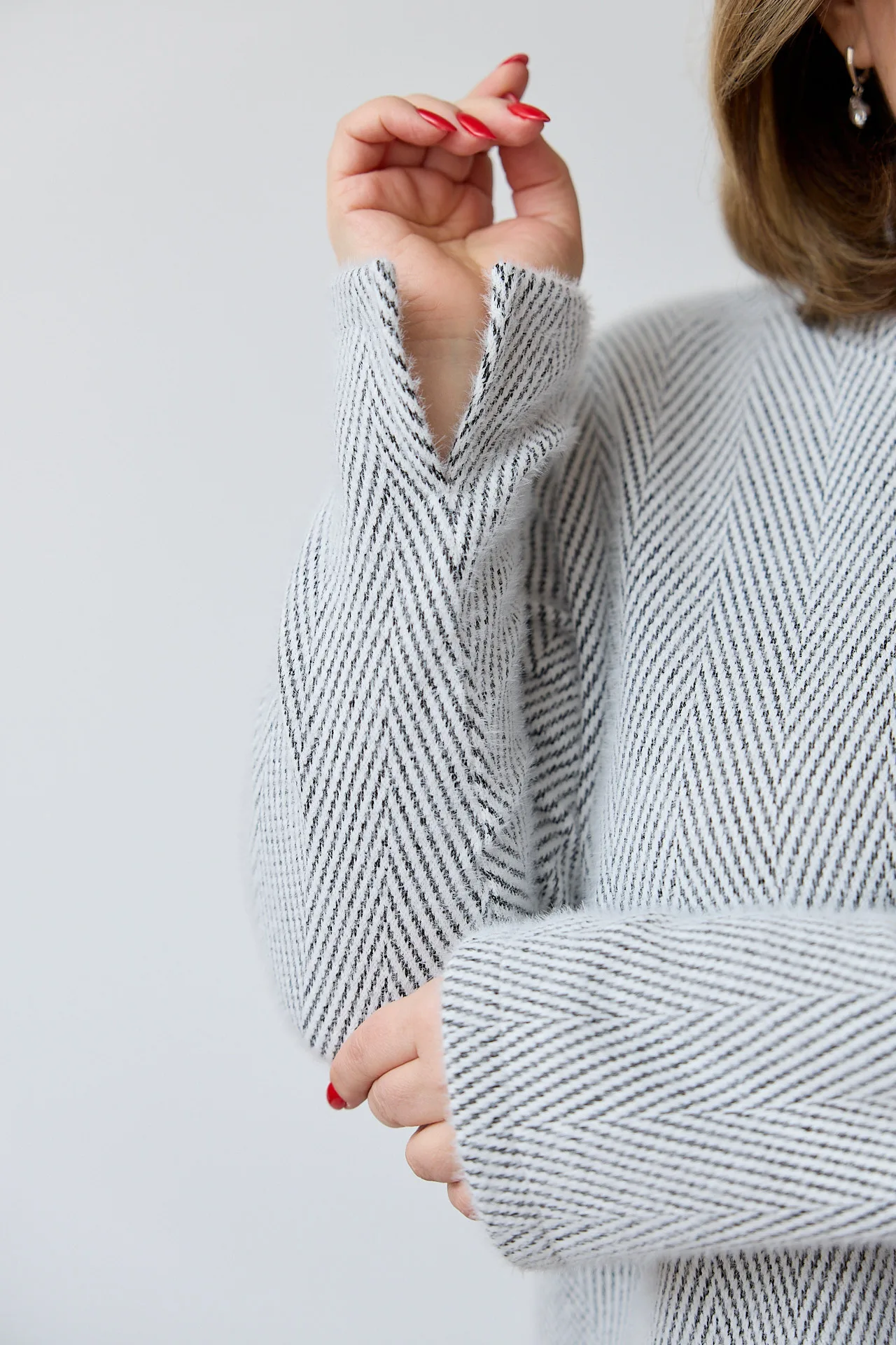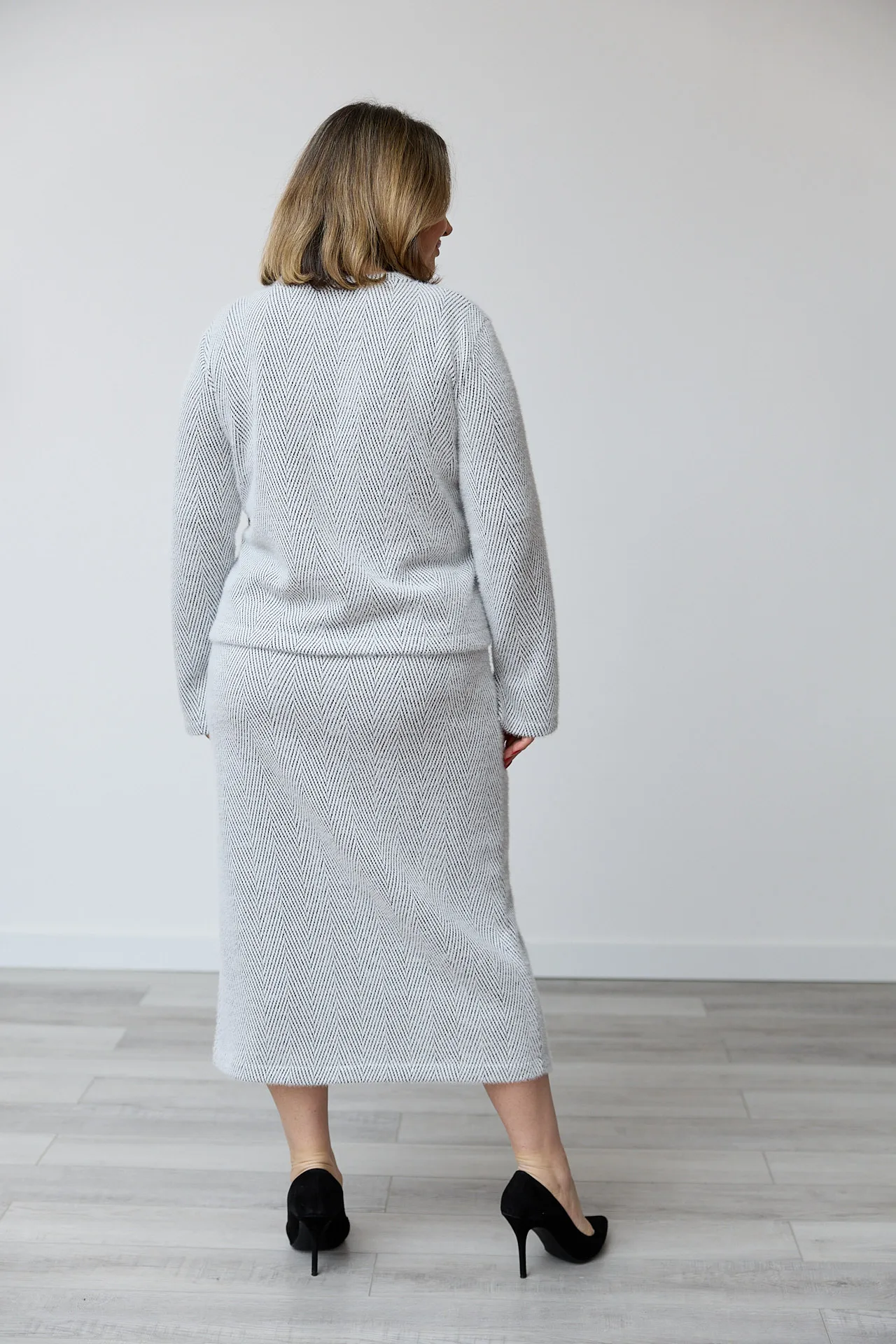 Принт: діагональ ялинка — класичний візерунок, що додає костюму витонченості і стильного вигляду.
