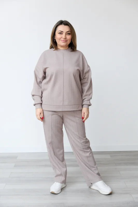 Дизайн: спортивний стиль, що поєднує елегантність і зручність. Костюм складається з комфортних штанів і кофти, що дозволяє легко поєднувати стиль і практичність у повсякденних образах.