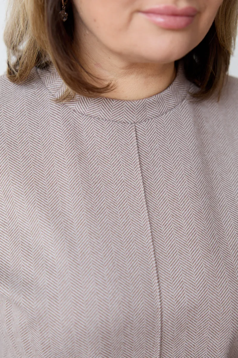 Тканина: трикотаж (кашемір “Camila”) — складі з 70% вовни та 30% поліестеру, що забезпечує тепло і м’якість, а також зносостійкість та еластичність. Цей матеріал ідеально підходить для прохолодних днів, даруючи приємне відчуття тепла і комфорту.