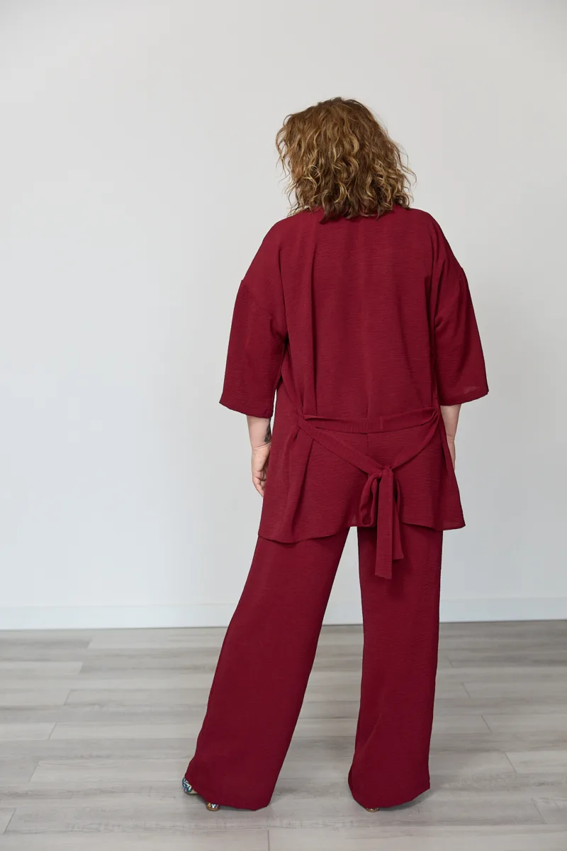 Костюм жіночий Estilo повсякдений-casual креп бордовий-білий 02-111