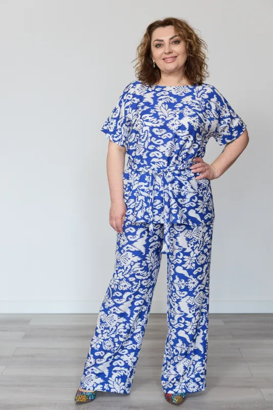 Костюм ESTILO жіночий із вільною блузою та широкими штанами. Стильний та комфортний костюм у трендовому відтінку- ідеальний вибір для повсякденних образів, роботи або відпочинку. Комплект складається з вільної блузи з коротким рукавом та широких штанів прямого крою. Блуза має лаконічний круглий виріз та доповнена знімним поясом, який підкреслює талію та дозволяє регулювати посадку. Зручні кишені додають практичності та сучасного вигляду. Штани вільного силуету красиво струмують по фігурі, забезпечуючи комфорт протягом усього дня. Модель вдало поєднує жіночність і свободу рухів, легко комбінується як із взуттям на підборах, так і з кедами чи сандалями.