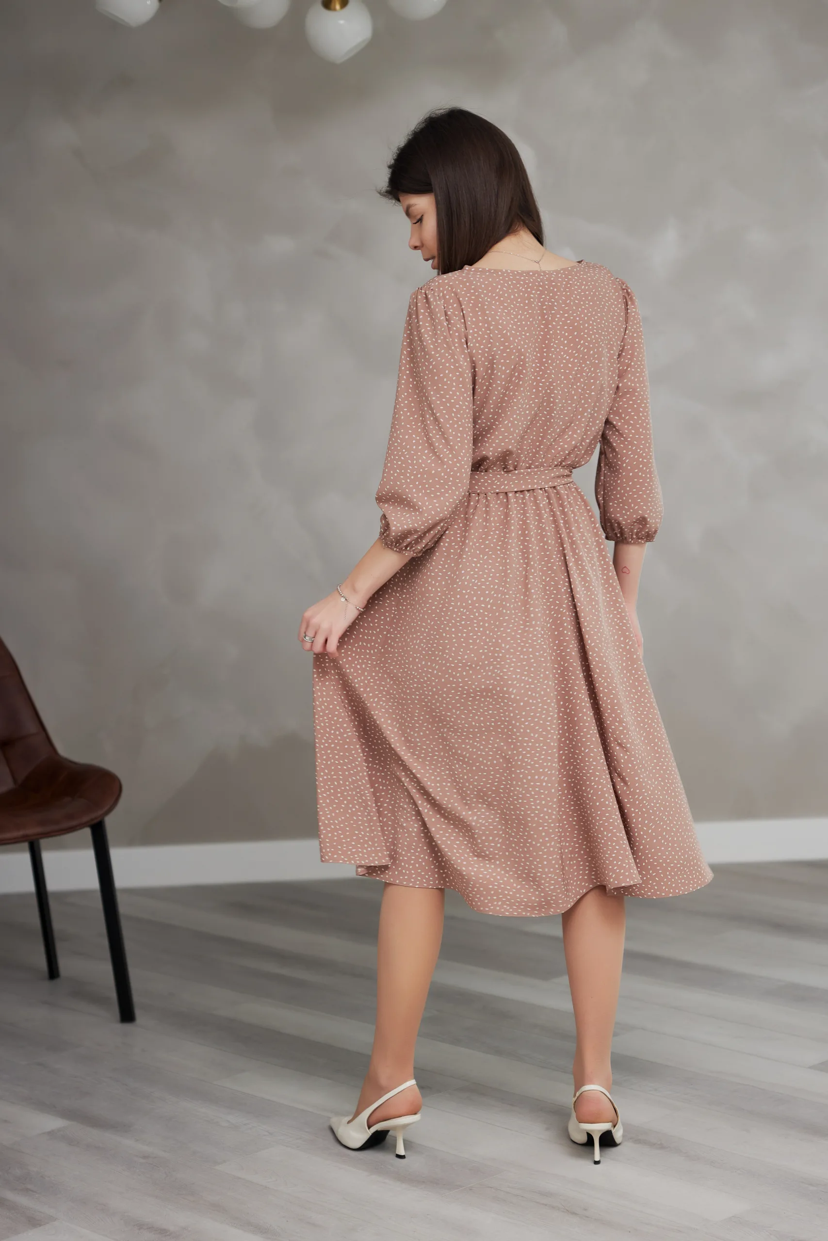 Пояс підкреслює талію, створюючи жіночний силует.