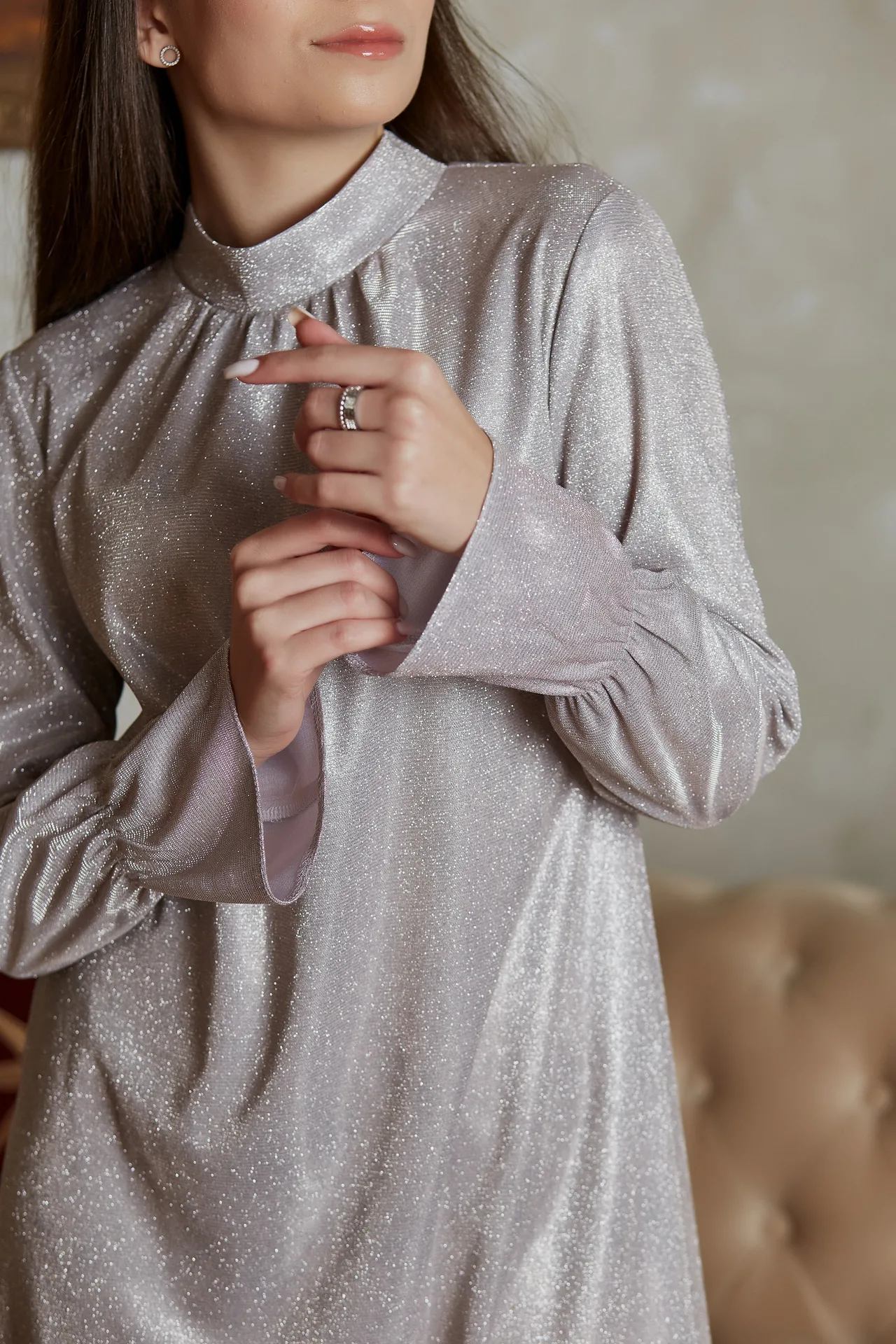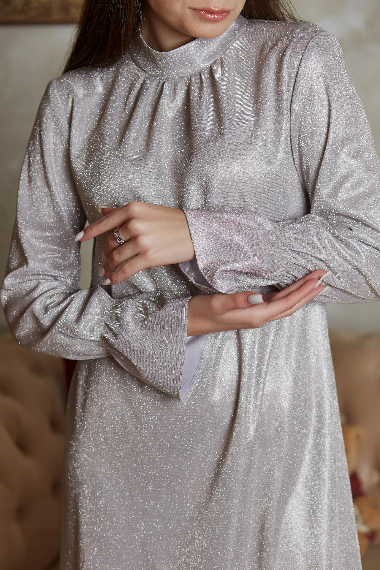 Принт: люрекс — тканина з блиском, що додає сукні розкішного вигляду і підкреслює святкову атмосферу.